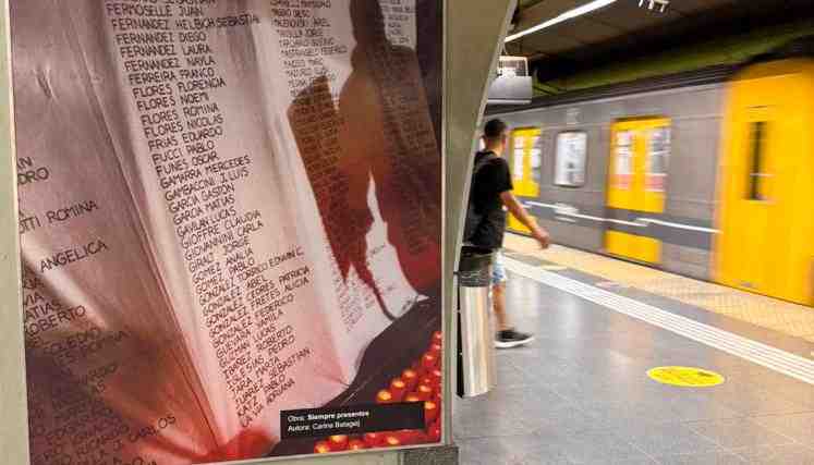Así lo recordaba: “A 20 años de Cromañón, renovamos las instalaciones artísticas de la estación Once – 30 de diciembre de la Línea H, en las que diversos artistas plasmaron su arte, destacando como hilo conductor las zapatillas, símbolo de la tragedia que provocó la muerte de 194 personas. Entre las obras, se destaca un mural titulado El Sol, cuyos rayos están formados por zapatillas y su trazado compuesto por los nombres de las víctimas. Además, hay imágenes en múltiples espacios y mensajes como “Miles de razones para la lucha”, “Memoria, verdad y justicia” y “4.500 sobrevivientes””.
