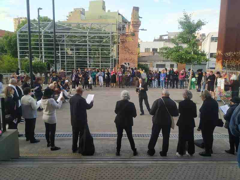 El taller de canto grupal de La Casona cerró la emotiva jornada con una presentación en vivo, interpretando varias canciones que coronaron la celebración de una década de memoria y comunidad en el Abasto.