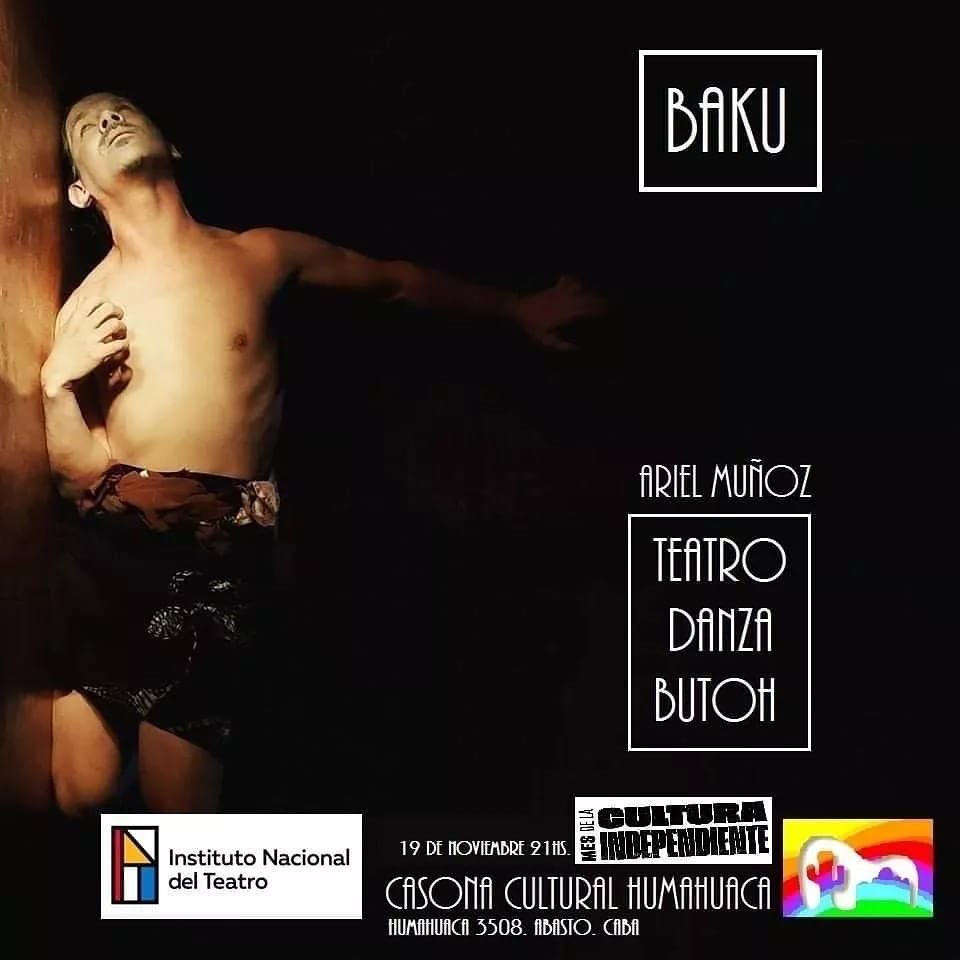 “El sábado a las 20 hs. hay teatro en nuestra sala blanca! Les invitamos a ver Baku, una obra de teatro y danza Butoh de @el_conquistador_gusano (Ariel Muñoz) Y a las 16:45 hs. estará el taller de Danza Butoh de @andrea.chama.3”, suman.