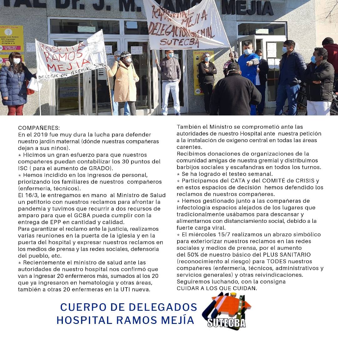 Este 15 de julio hubo una protesta de personal médico del Hospital Ramos Mejía por distintas reivindicaciones laborales en pandemia.