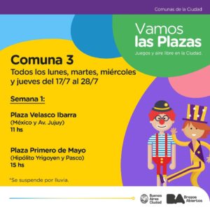El Gobierno de la Ciudad de Buenos Aires informó que durante las dos semanas de las vacaciones de invierno regresa el ciclo Vamos Las Plazas, una propuesta con espectáculos gratuitos en plazas y parques de las 15 Comunas porteñas.